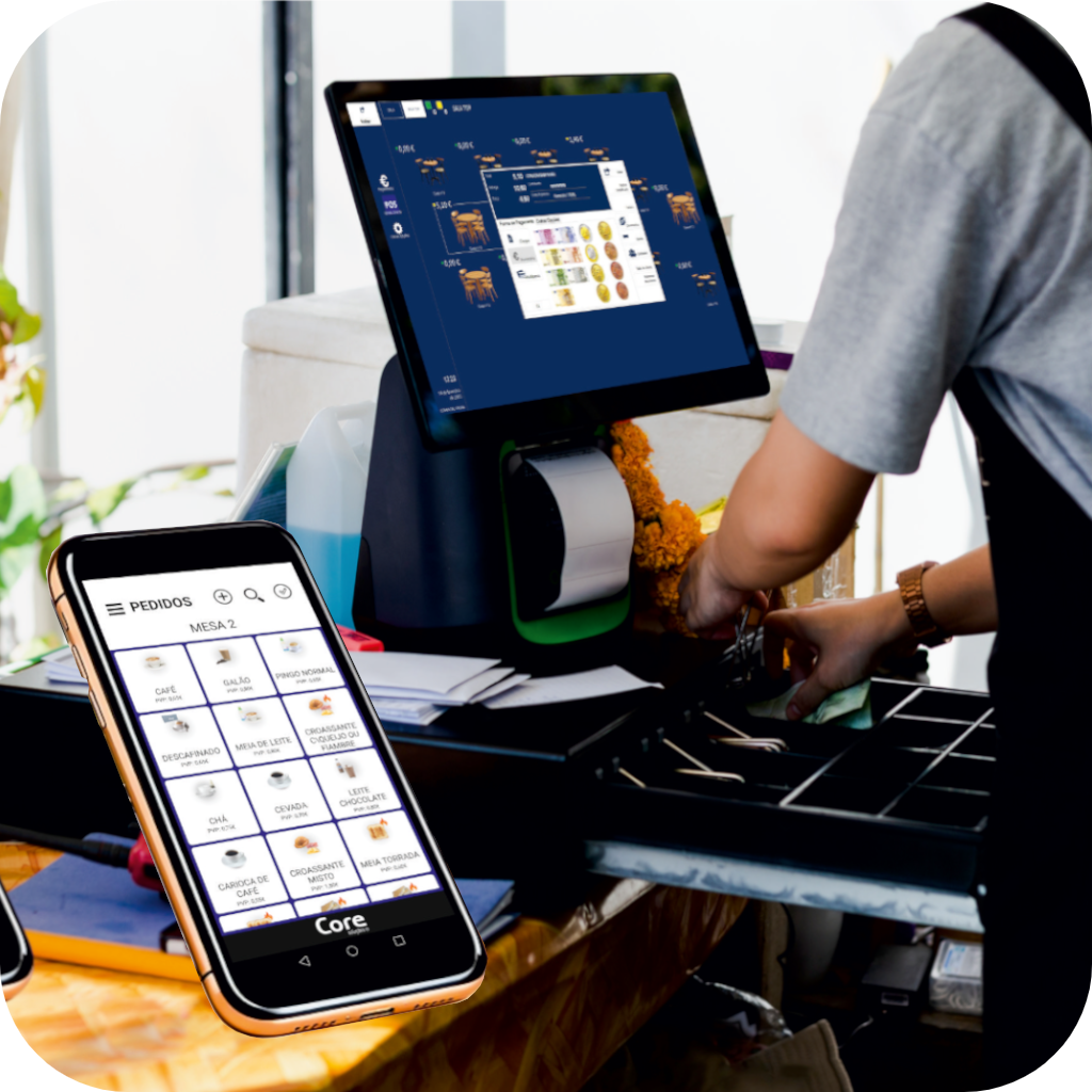 Funcionalidade dedicada à gestão de mesas em restaurantes e cafés, permitindo visualizar ocupações, gerir pedidos por mesa e otimizar o atendimento ao cliente. - Á Mesa