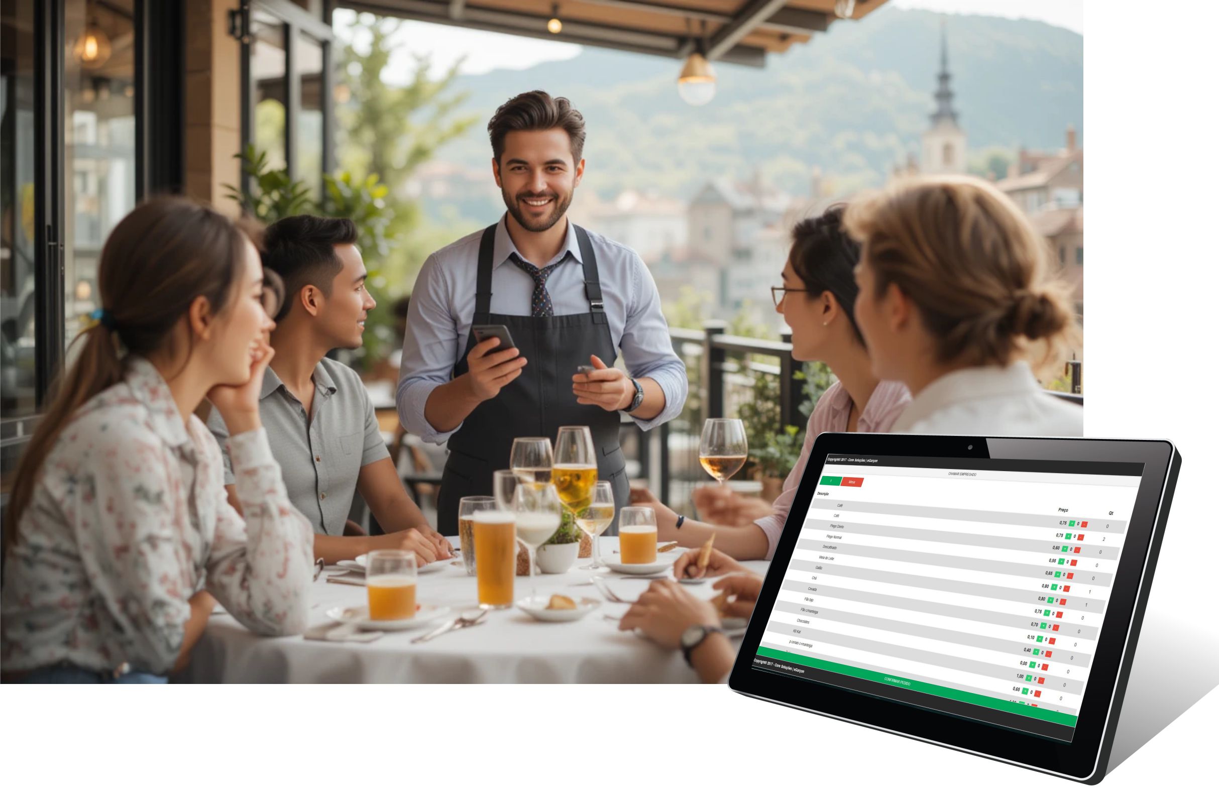 Liga o sistema a um visor que mostra ao cliente, em tempo real, os produtos registados, preços e totais da compra, melhorando a transparência e a experiência no ponto de venda. - Módulo de mesas